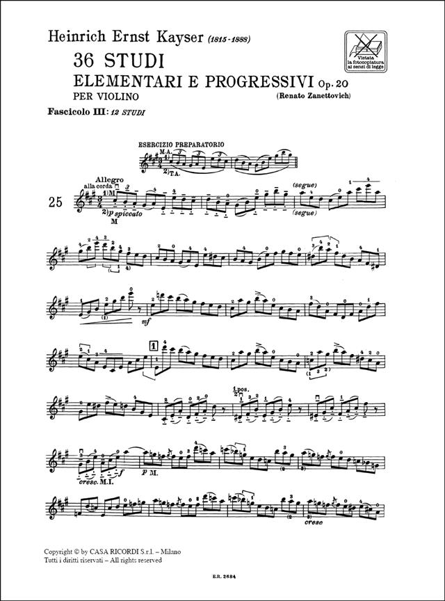 36 Studi Elementari e Progressivi Op. 20: Fascicolo III: 12 Studi, Violin