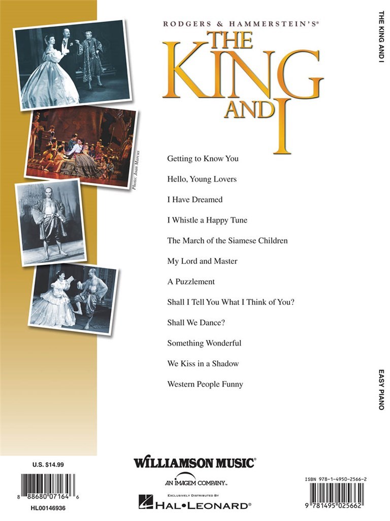 A dozen songs arranged for easy piano from the classic Rodgers & Hammerstein about a British governess in the Siamese Court. Includes: Getting to Know You · Hello, Young Lovers · I Have Dreamed · I Whistle a Happy Tune · The March of the Siamese Children · My Lord and Master · A Puzzlement · Shall I Tell You What I Think of You? · Shall We Dance? · Something Wonderful · We Kiss in a Shadow · Western People Funny.